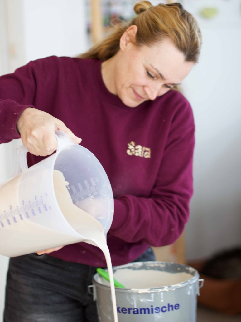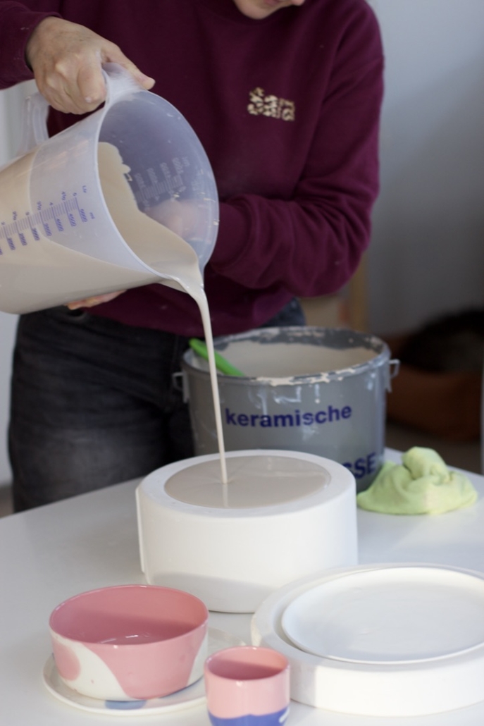 Je ontdekt hoe gietporselein zich gedraagt en hoe je met kleine variaties in tijd en handeling unieke resultaten krijgt.