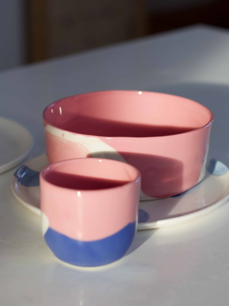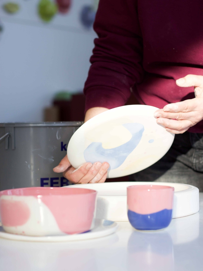 Je gaat aan de slag met gekleurd porselein, dus jouw set krijgt door en door kleur in het materiaal zelf, wij zorgen later voor een transparant glazuur.