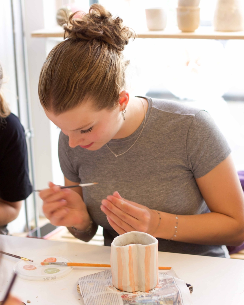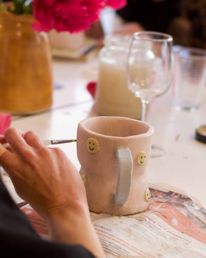 De perfecte mok maak je gewoon zelf! In drie uur tijd bouw jij in deze workshop je eigen favo mug (met of zonder oor) en geef je ‘m kleur & karakter met glazuur. Denk: satisfying en een beetje messy in the best way. Wij drogen en stoken je werk twee keer, zodat het straks dishwasher-proof & foodsafe is. Na vijf weken a zes weken krijg je van ons een seintje met het pickup-moment om je werk op te komen halen.