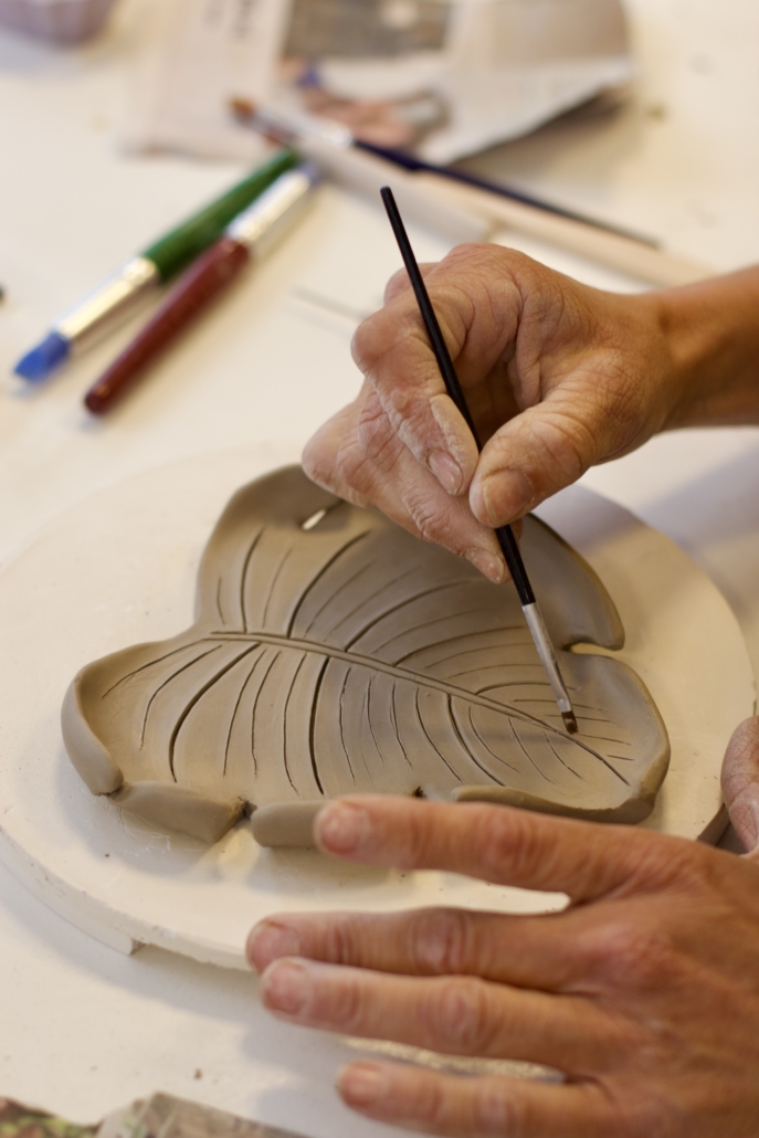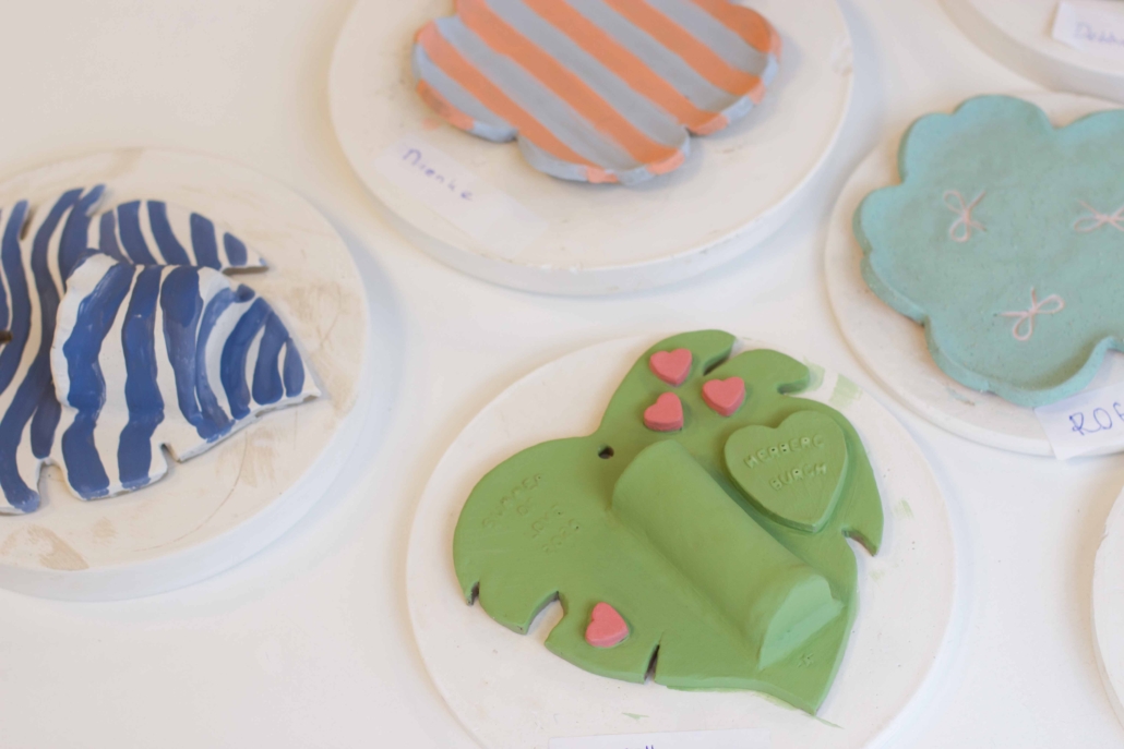 Tijdens de workshop Clay Display maak je naar eigen ontwerp een wandornament met een mini-vaasje of een leuk plankje erop. Perfect voor dat ene bloemetje, een veertje of gewoon… niets (ook mooi). De eerste helft van de workshop bouw je zelf je vorm met hulp van ons en in de tweede helft ga je aan de slag met glazuur. Of het nu een wandvaasje of meer een altaartje wordt, origineel is het sowieso! Na de workshop laten wij je werkje nog een dag of tien rustig drogen en gaat je werk in de biscuitstook. Hierna brengen we er transparant glazuur op aan en stoken we het in een glazuurstook in onze ovens. Na ongeveer zes weken krijg je van ons een berichtje om je werk op te halen.