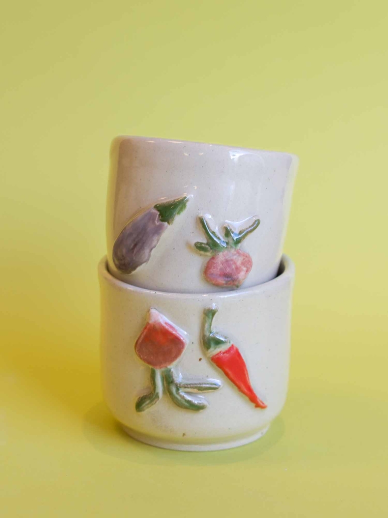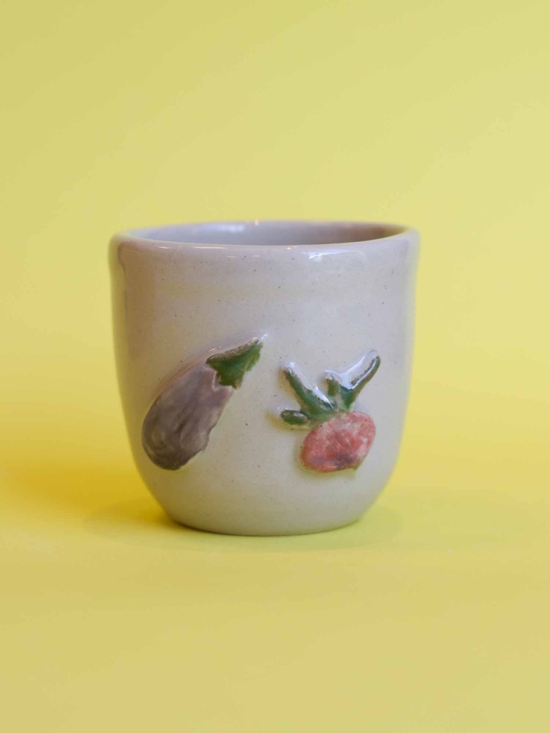 De veggies? Die zijn stuk voor stuk met de hand uitgesneden en zorgvuldig met glazuur beschilderd. Perfect voor veggie (en fruity) fans, moestuinliefhebbers of iedereen die houdt van een beetje speelsheid in zโn servies. Van elk mokje is er maar eentje en ze kunnen ook nog eens in de vaatwasser.